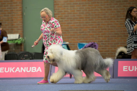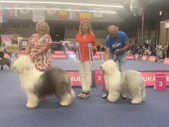 Only 3 OES were entered, I think all the others were at the Euro Show. 1 male and 2 females. ‘Ch. West Side Story aus dem Elbe-Urstromtal’ was the youngest with her 19 months and won the CACIB, CAC and became Best of Breed. In the ring of honour she was still among the last 6 dogs with the judge Mrs Dijhorst, who also judged Group 1.